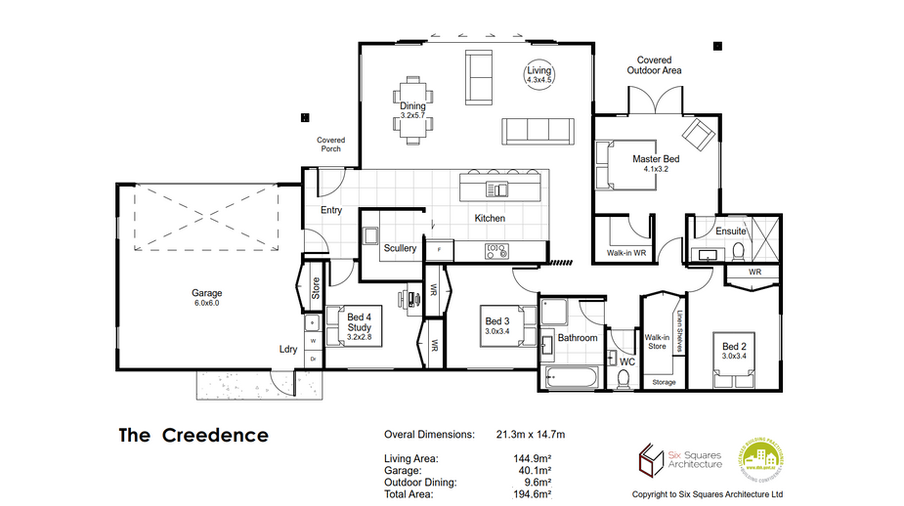 The Creedence plan has been designed to fit all walks of life, from families to retiries. This smart design ticks all the boxes of modern living with luxuries such as the large kitchen, scullery, walkin wr and ensuite.